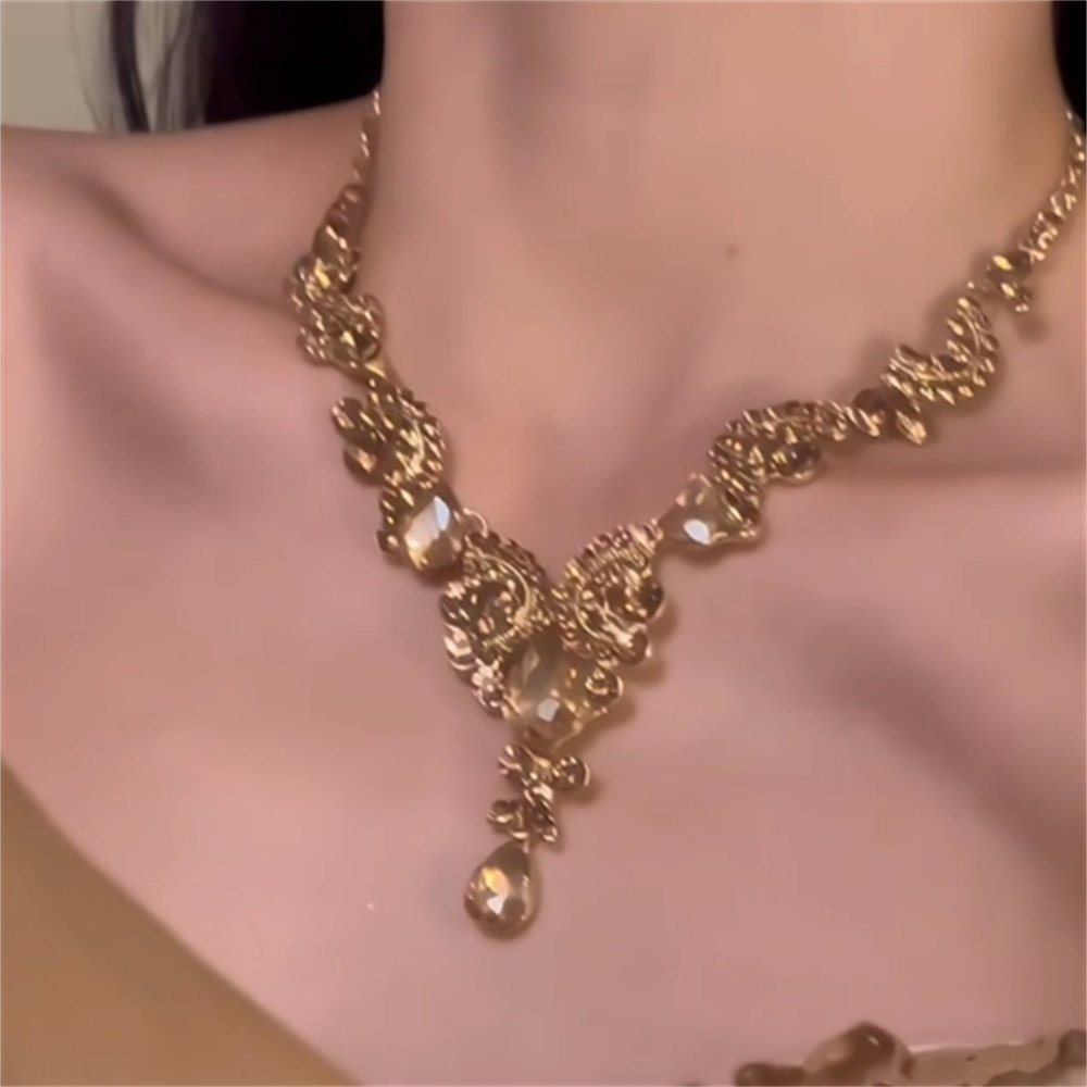 公主生日水滴项链耳环套装轻奢千金晚礼服女新娘高级夸张小众配饰