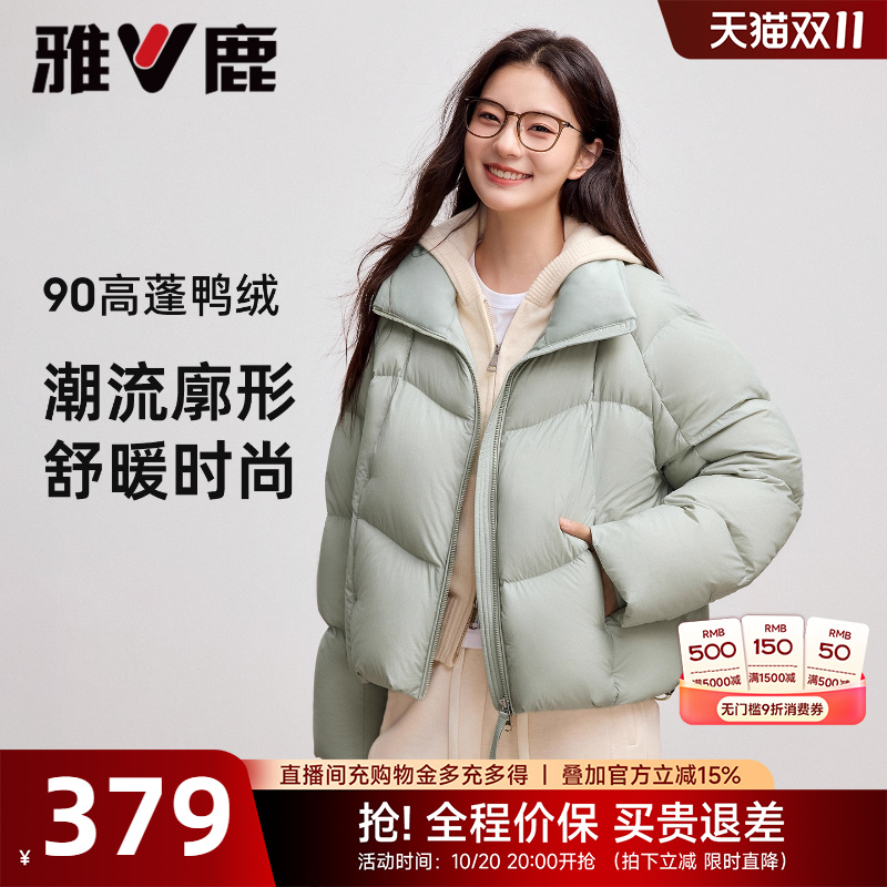 V/雅鹿秋冬新款短款轻薄立领90绒羽绒服时尚百搭秋冬装保暖女款
