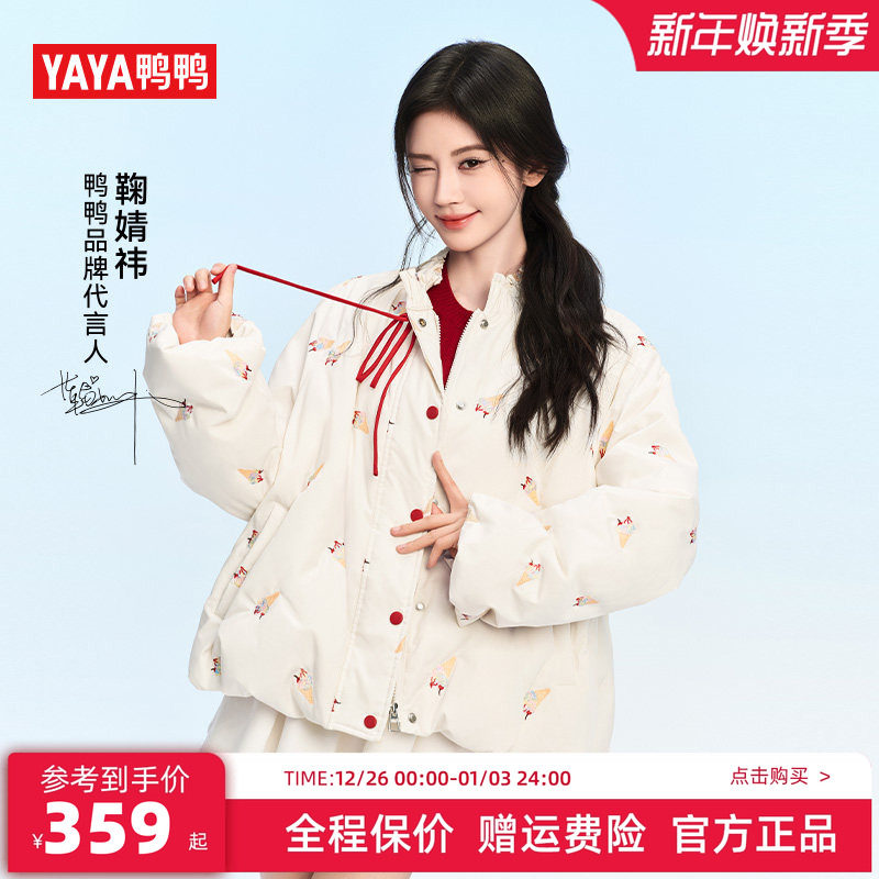 【冰淇淋系列】鸭鸭羽绒服女款2025年秋冬新款短款时尚印花外套