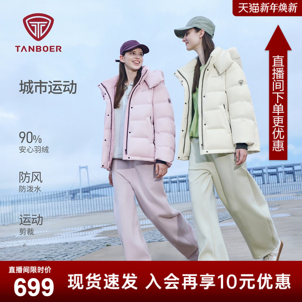 坦博尔羽绒服女款冬季2025新款短款连帽保暖时尚休闲面包服外套