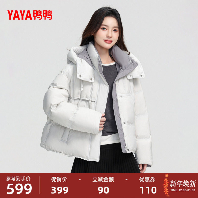 鸭鸭羽绒服女款2025年秋冬反季短款时尚百搭连帽加厚保暖鸭绒外套