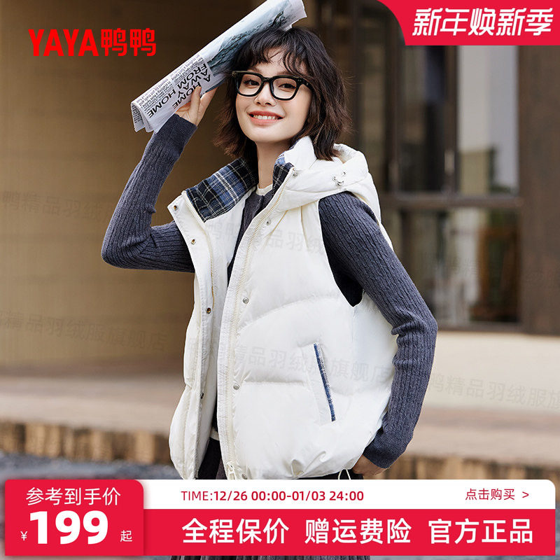 鸭鸭羽绒马甲女款2025年新款短款秋冬简约休闲保暖外穿连帽马夹