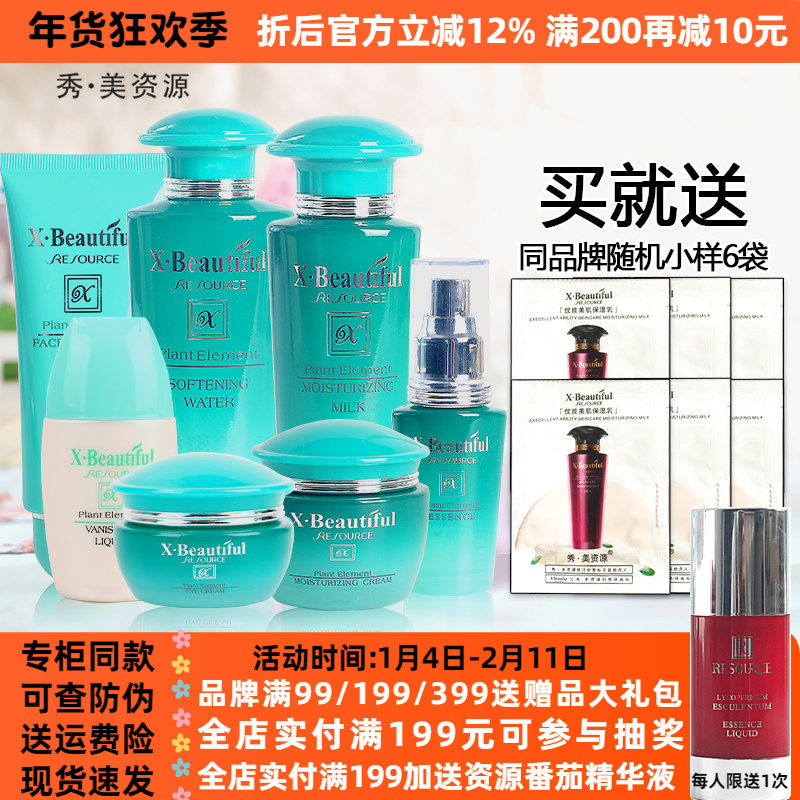 秀美资源化妆品套装官方正品姿源植物素洁面水乳霜精华保湿护肤品