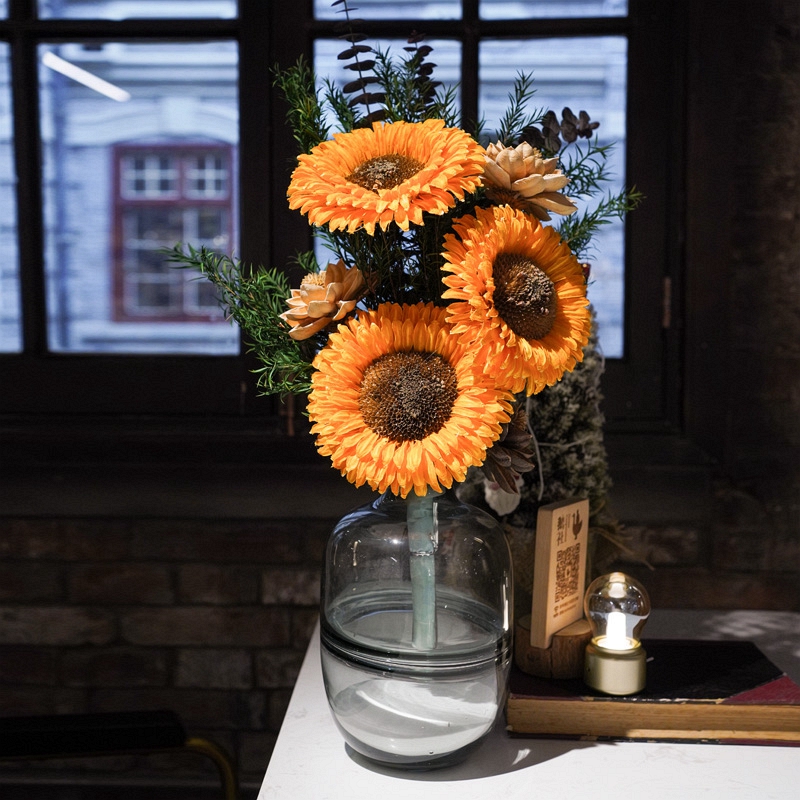 永生花向日葵干花花束客厅摆设手工大仿真花落地餐桌摆件混搭花瓶