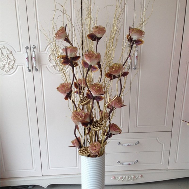 高枝玫瑰假花仿真花落地客厅绢花摆设干花束花卉装饰插花永生花艺