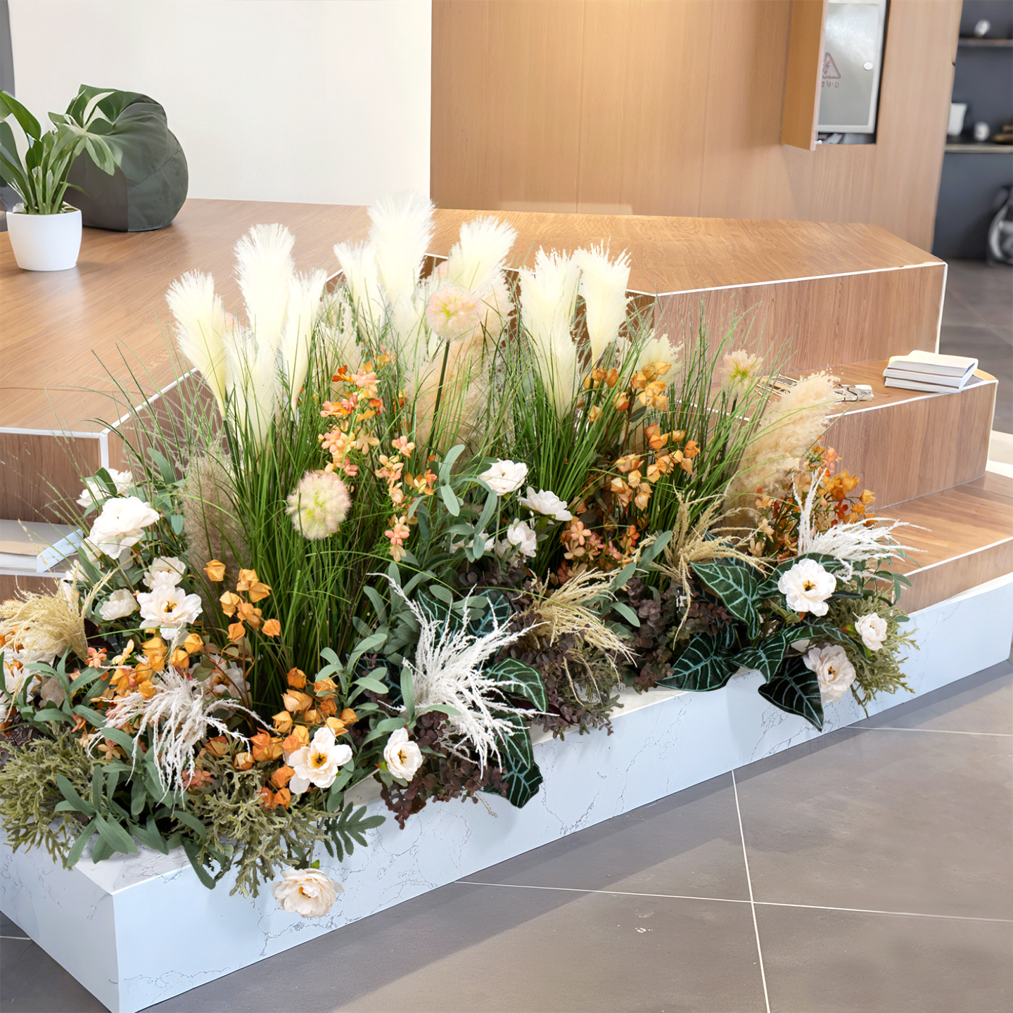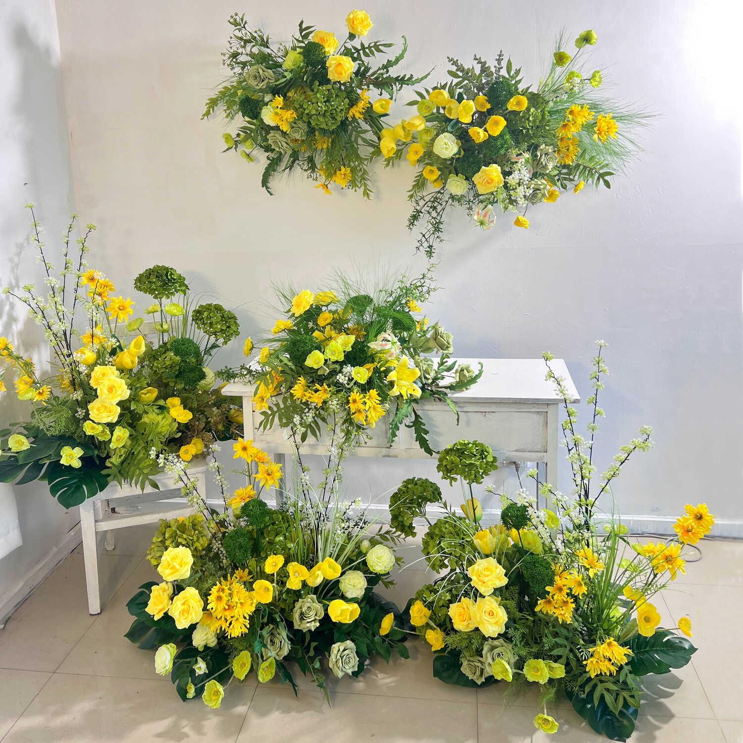 高档仿真花落地森系黄色花排酒店婚礼商场交车区橱窗装饰花艺摆设