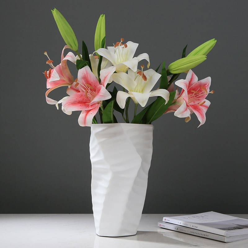 香水百合仿真花落地o花瓶插花假花客厅酒店样板间橱窗装饰花艺摆
