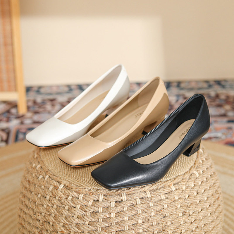 488A 方头粗跟单鞋女2025新款法式浅口中跟女鞋小众职业工作跟鞋