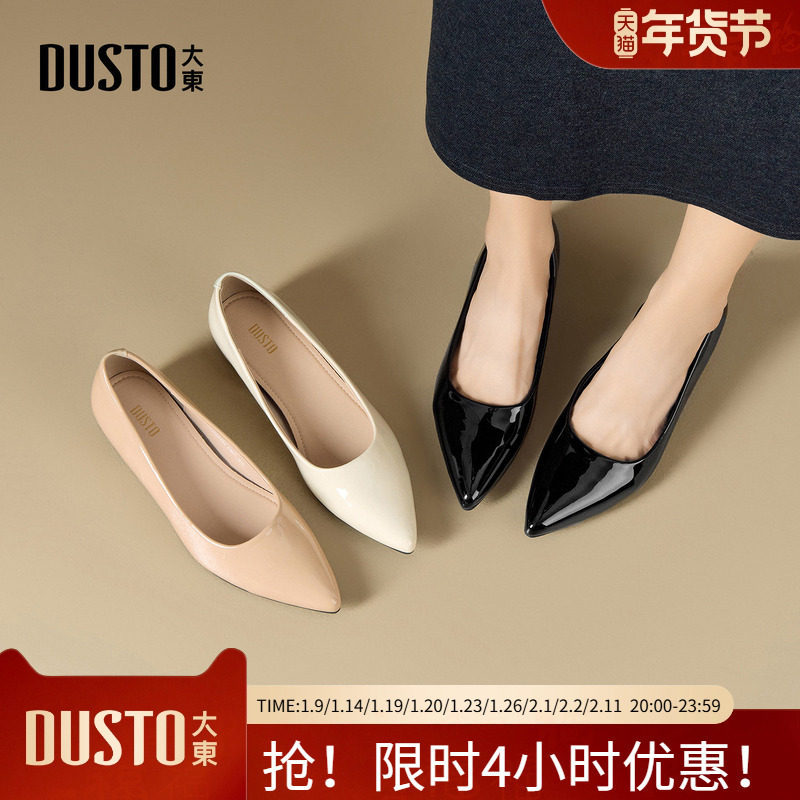 大东浅口鞋女鞋2025春新款简约时尚圆头套脚通勤中跟单鞋1049