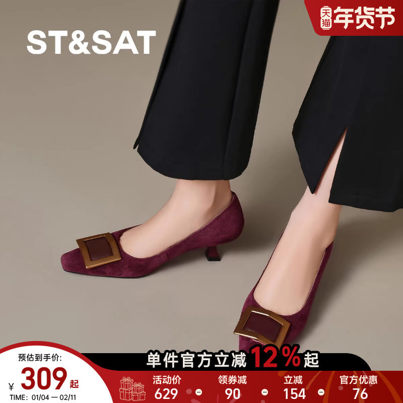 星期六女鞋子2025新款优雅婚鞋女浅口通勤鞋女中跟简约女单鞋百搭