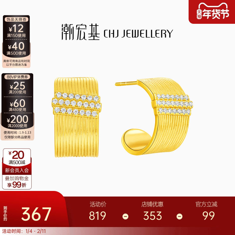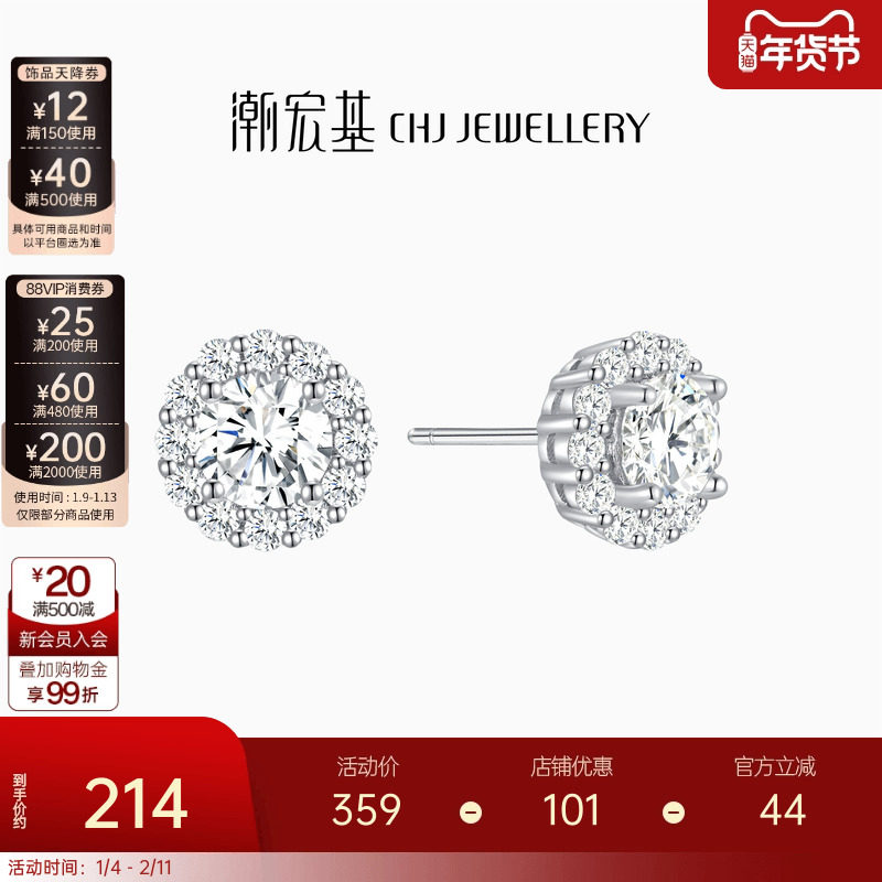 潮宏基追光s925银耳钉银饰耳饰方糖简约通勤ins送女友生日礼物