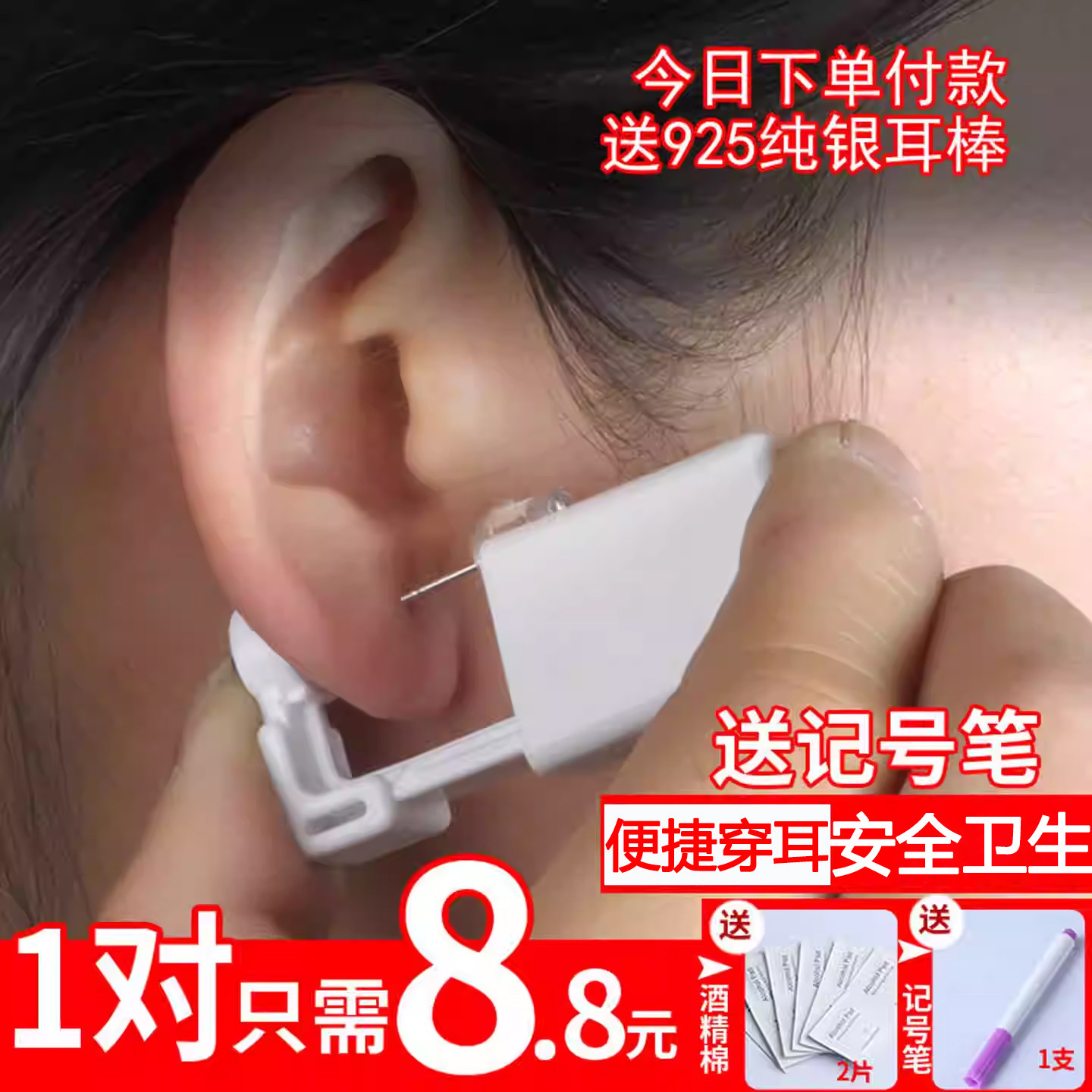 打耳洞神器 二代一次性低痛穿耳器 打耳洞枪穿耳孔耳洞S925银耳钉