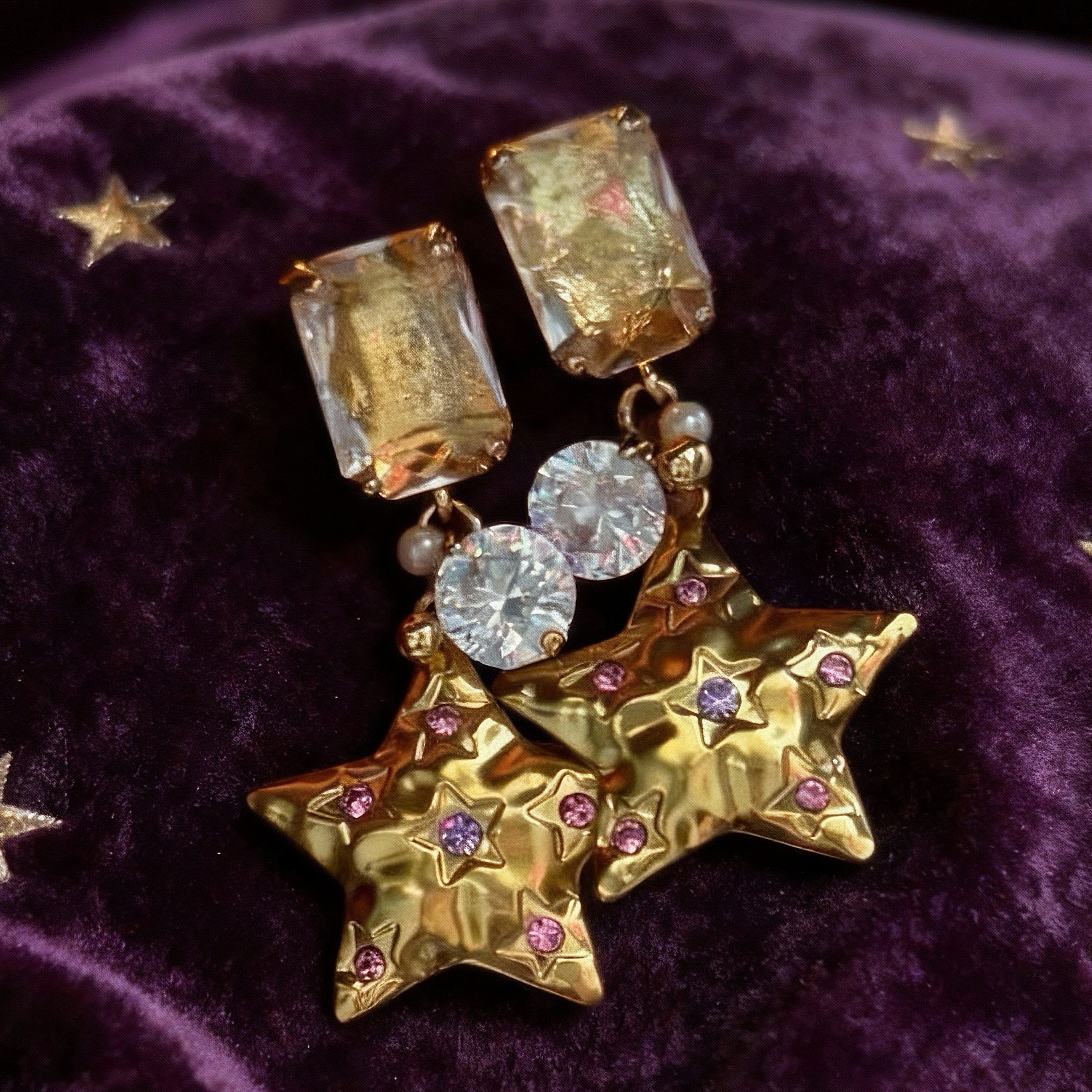 循环之夜 黄打屁原创设计魔法八芒星甜仙质感氛围闪925银耳钉耳夹