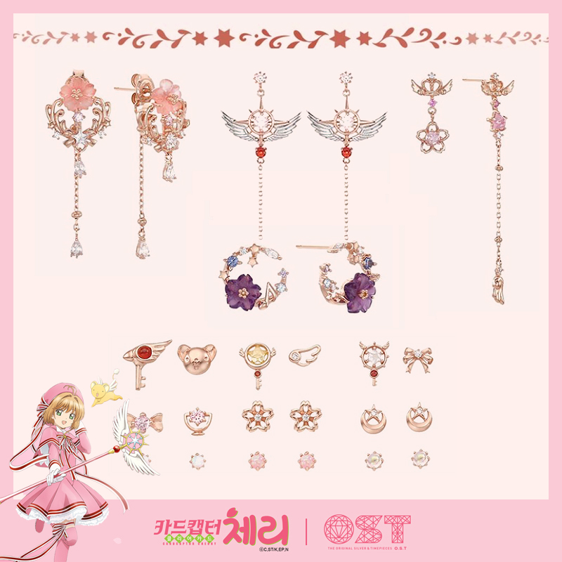 韩国OST百变小樱魔卡少女樱联名款耳饰魔法杖925银耳钉吊坠樱花