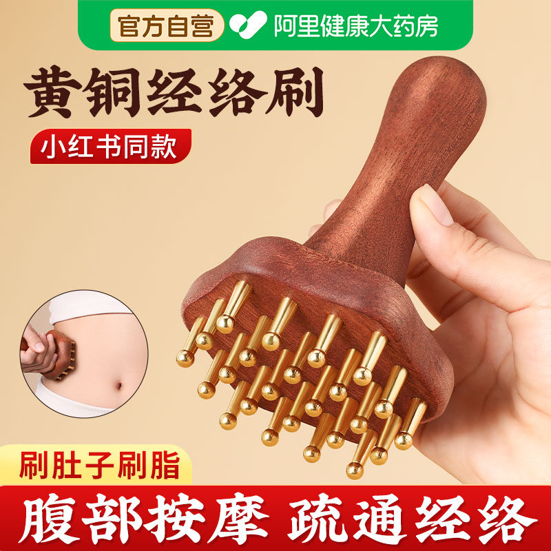 黄铜经络刷全身疏通按摩刷揉肚子腹部头部手腿背部刮痧工具精油刷