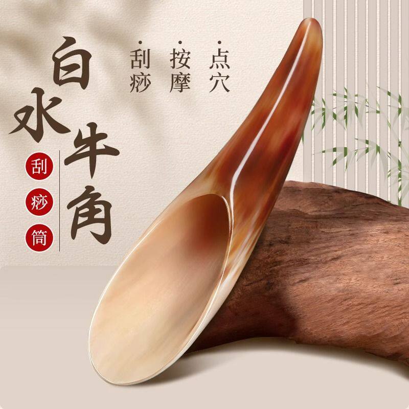 白牦牛角刮痧神器肩颈背部刮痧板全身通用脖颈部淋巴刮沙按摩工具