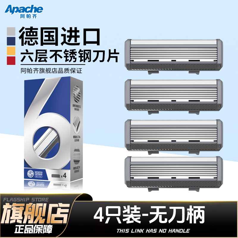 apache/阿帕齐6层德国进口刀片男士手动刮胡刀头阿帕奇剃须刀天弓