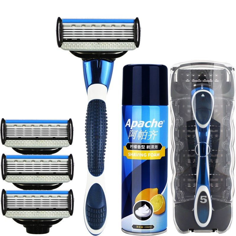 阿帕齐美国进口5层刀片手动剃须刀手动 刮胡刀阿帕奇剃须刀套装