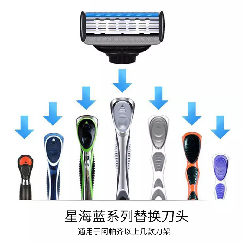 阿帕齐5层刀片男士阿帕奇剃须刀手动式刮胡刀片非吉利星海蓝刀头