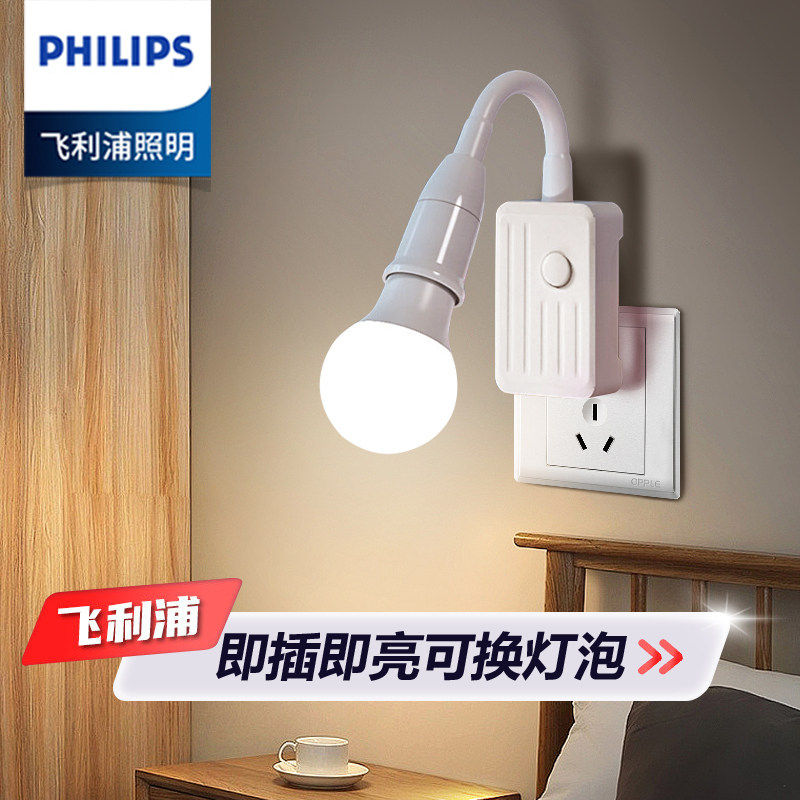 飞利浦灯泡灯座带开关插座万向灯座软管灯头插头E27螺口led插座灯