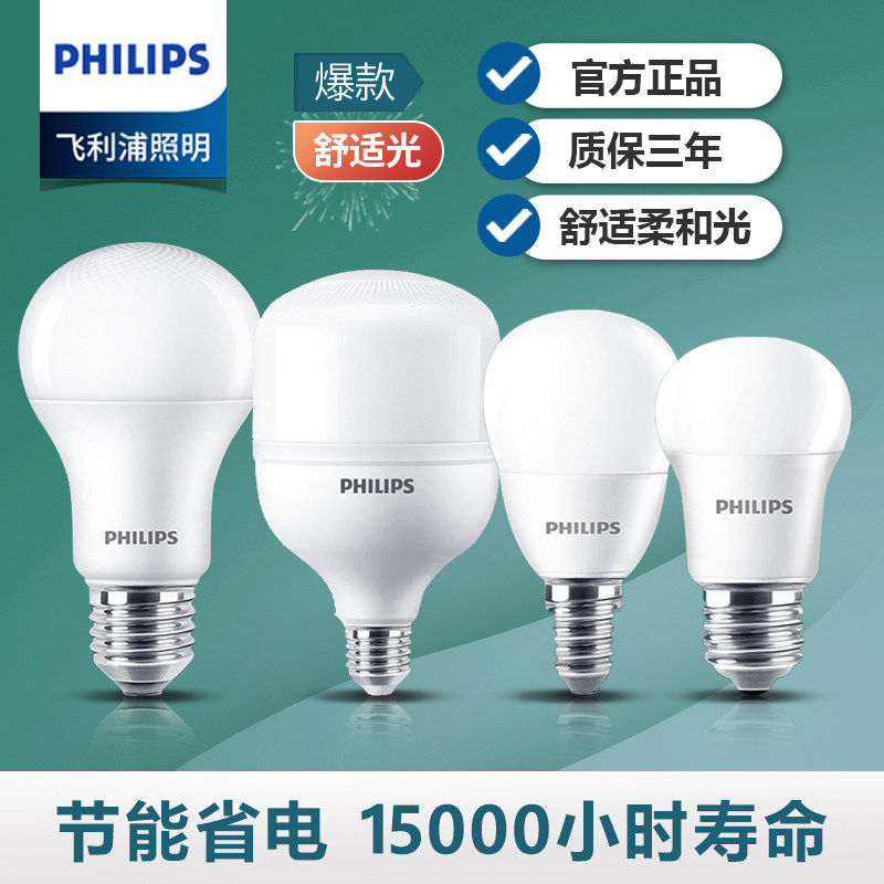 飞利浦led灯泡E27E14螺口家用吊灯节能灯泡超亮大功率照明灯护眼