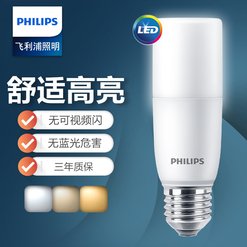 飞利浦灯泡E27大螺口暖白护眼学习防蓝光led无频闪专用台灯节能灯