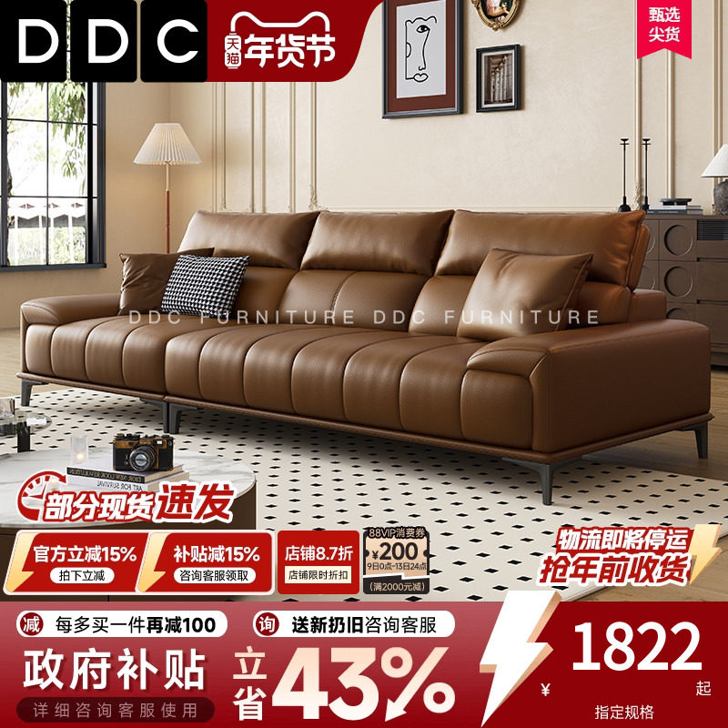 DDC 意式极简真皮沙发组合现代简约大小户型客厅轻奢头层牛皮沙发