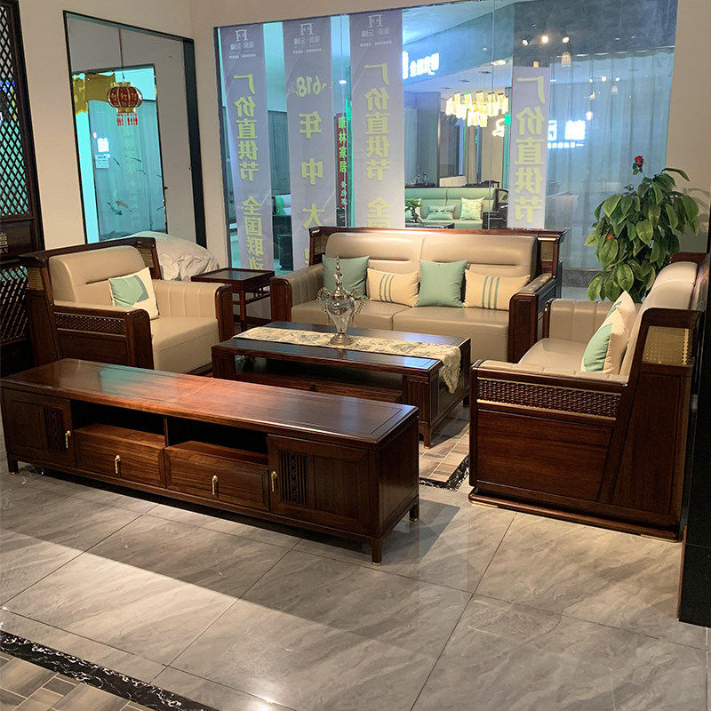 新中式实木沙发乌金木真皮沙发组合新款客厅现代简约高端别墅家具