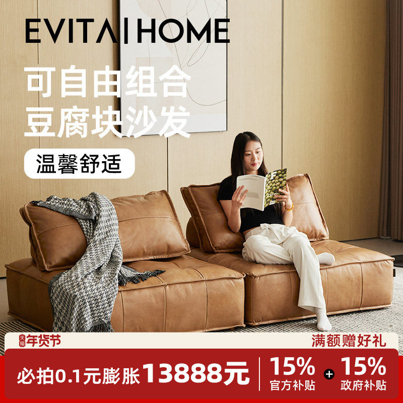 红晟复古真皮沙发组合客厅现代简约小户型储物云朵头层牛皮沙发床