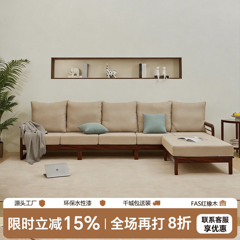 现代简约红斑马木实木沙发组合轻奢真皮小户型直排四人位客厅家具