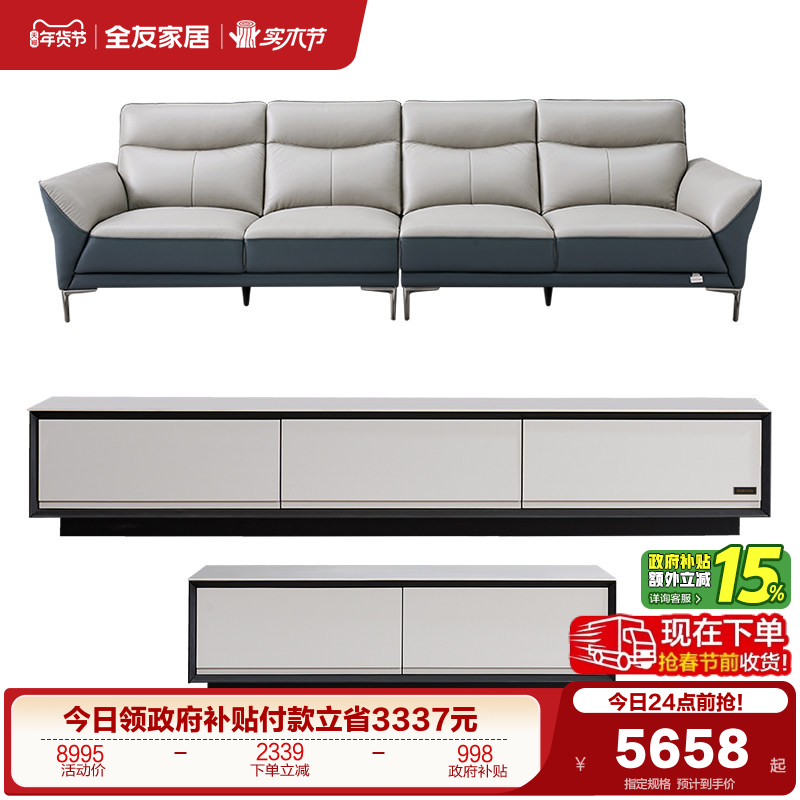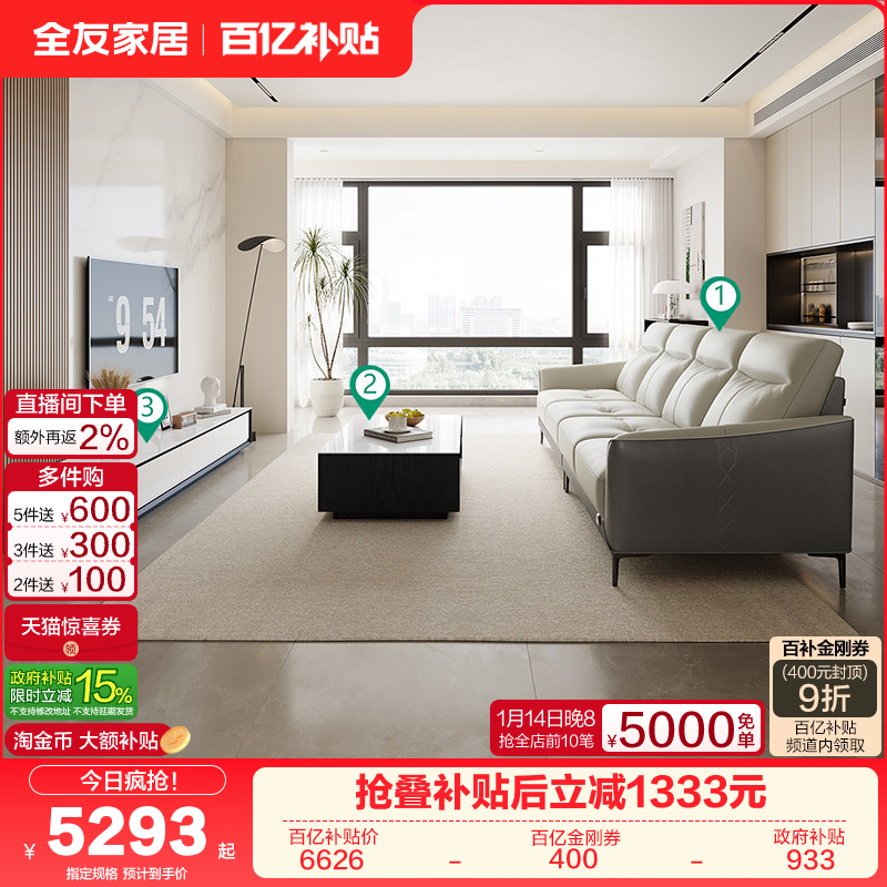 全友家居现代简约真皮沙发客厅岩板茶几储物收纳电视机柜家具组合
