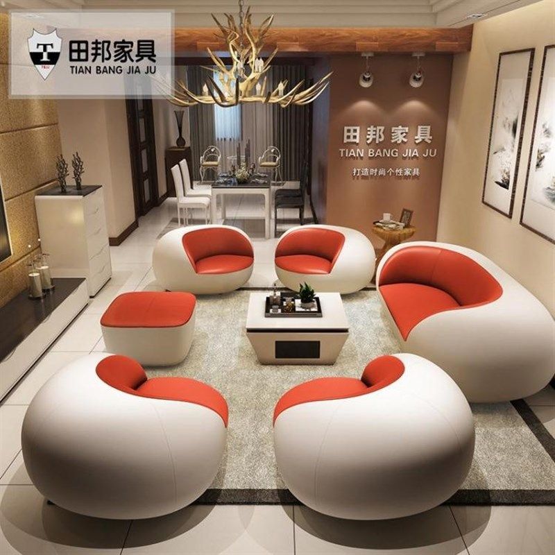 简约现代真皮沙发客厅组合时尚个性皮艺创意异形休闲酒店办公家具