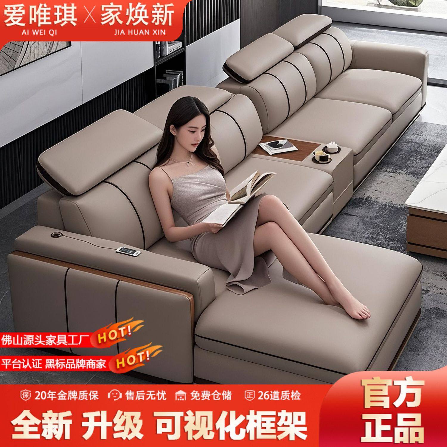 政府补贴现代简约真皮沙发客厅2025新款贵妃直排大小户型沙发组合