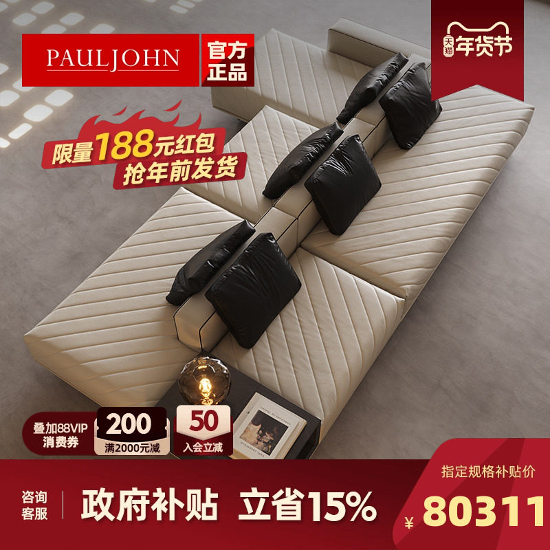 PAULJOHN意式简约真皮沙发别墅平层现代客厅极简靠背组合中岛沙发