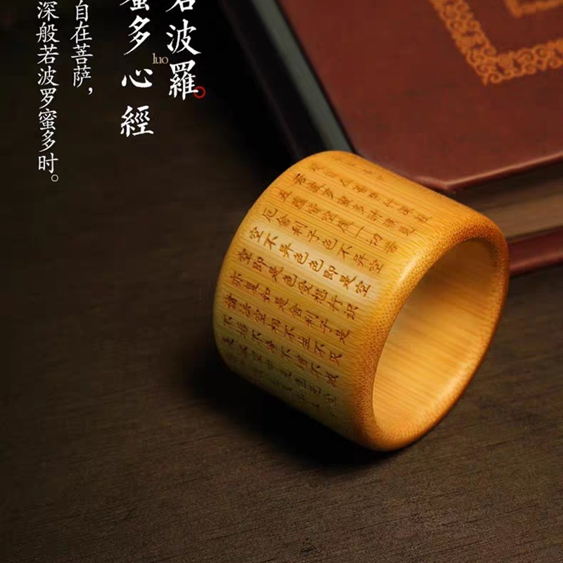 天然紫檀整木掏空般若心经扳指手环大拇指戒指文玩复古礼物手把件