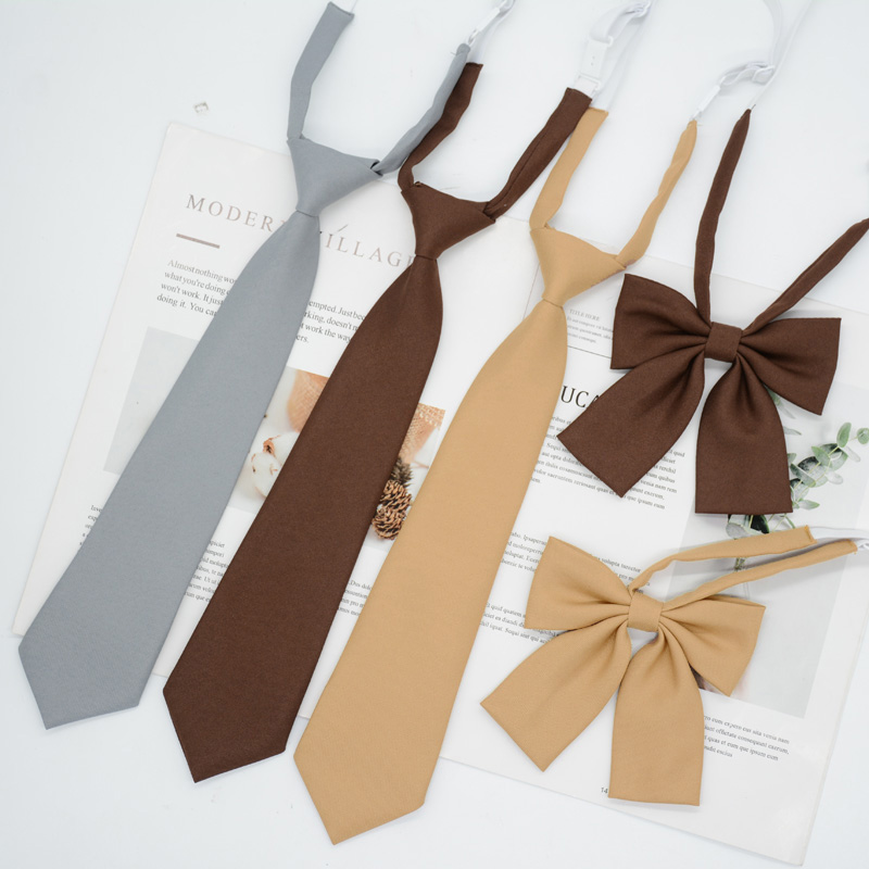 男生女生免打领带棕色卡其酒红领花JK学院风纯色搭配衬衫日系韩版