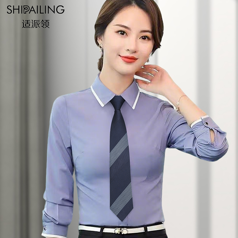 适派领 领带女免打结正装商务职场蓝色条纹西装衬衫拉链女生领带