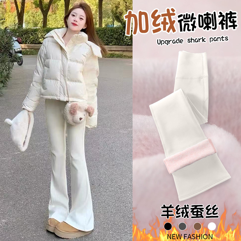 加绒微喇鲨鱼裤女外穿秋冬2025新款高腰弹力小个子白色瑜伽喇叭裤