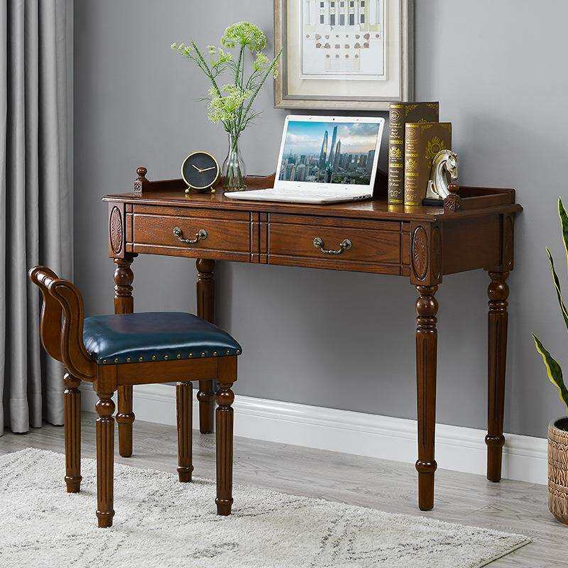 美式实木书桌欧式复古电脑桌卧室写字台学生家用办公小户型梳妆台