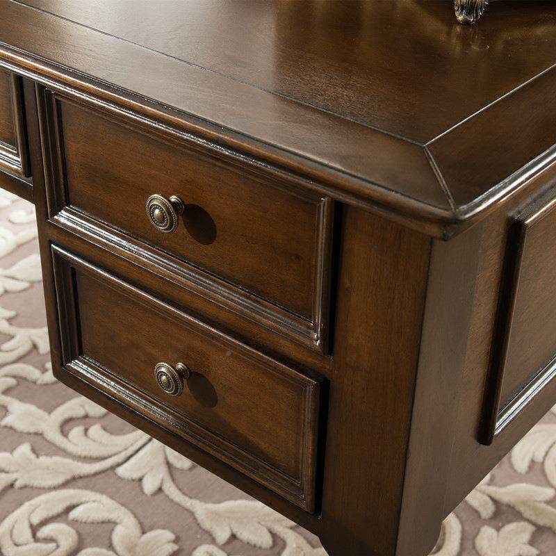 粤港家具 欧式书桌 电脑桌写字台办公桌学习桌 美式实木雕花书桌