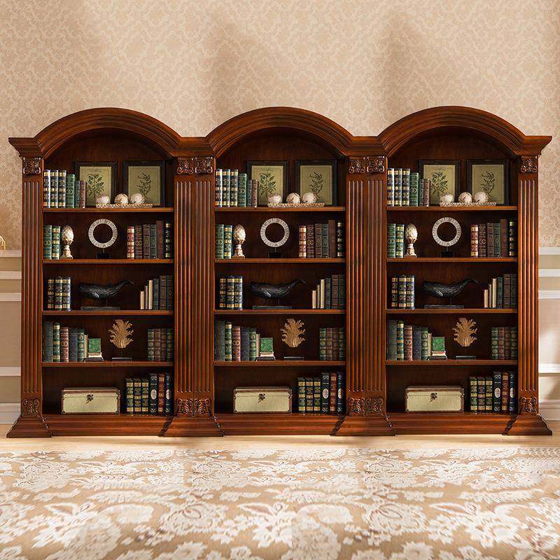 定制双人书桌学生家用电脑桌书柜书架一体写字桌欧式实木学习桌子