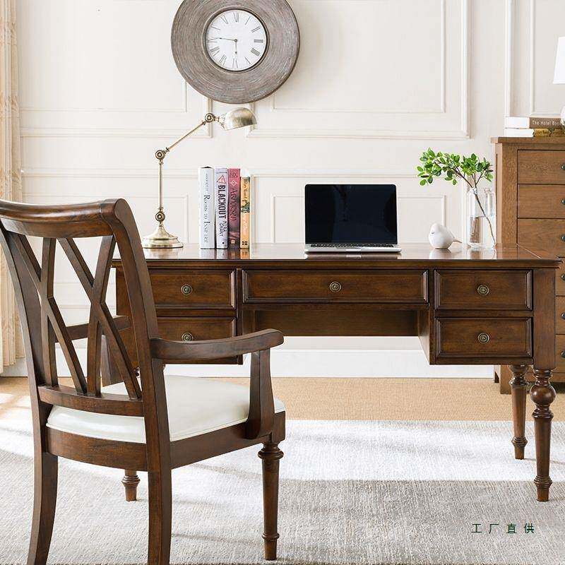 简约实木书桌美式复古写字台办公桌欧式卧室家用电脑桌书房学习桌