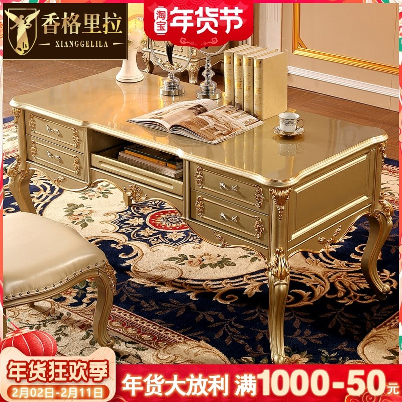 欧式电脑桌 美式奢华实木描金描银大书桌办公桌子写字台书房家具