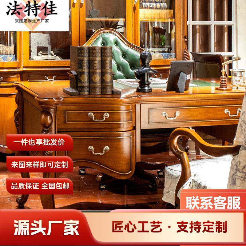美式风实木书桌欧式电脑桌办公桌写字台书房家具书桌椅书柜组茶桌