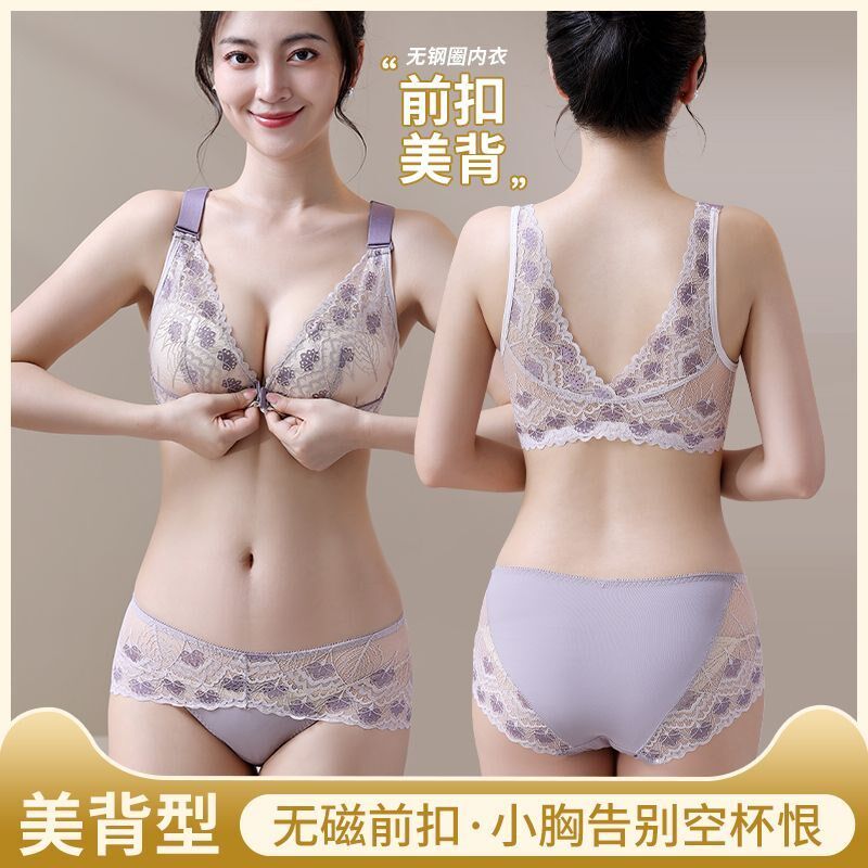 好奇蜜斯前扣内衣女聚拢小胸显大性感蕾丝文胸罩套装美背纯欲法式
