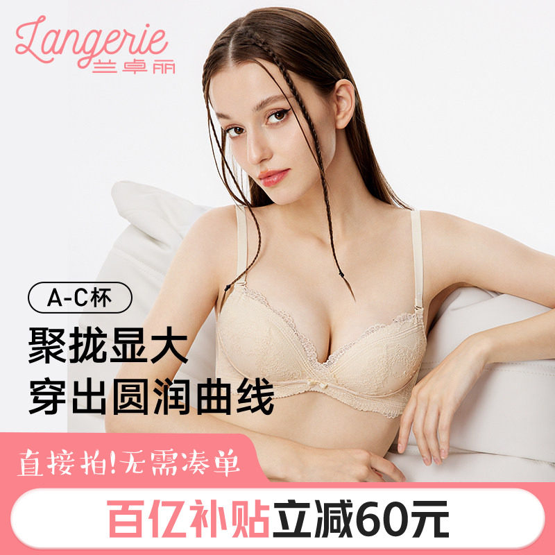 兰卓丽内衣女聚拢小胸显大无钢圈蕾丝文胸红色本命年收副乳防下垂