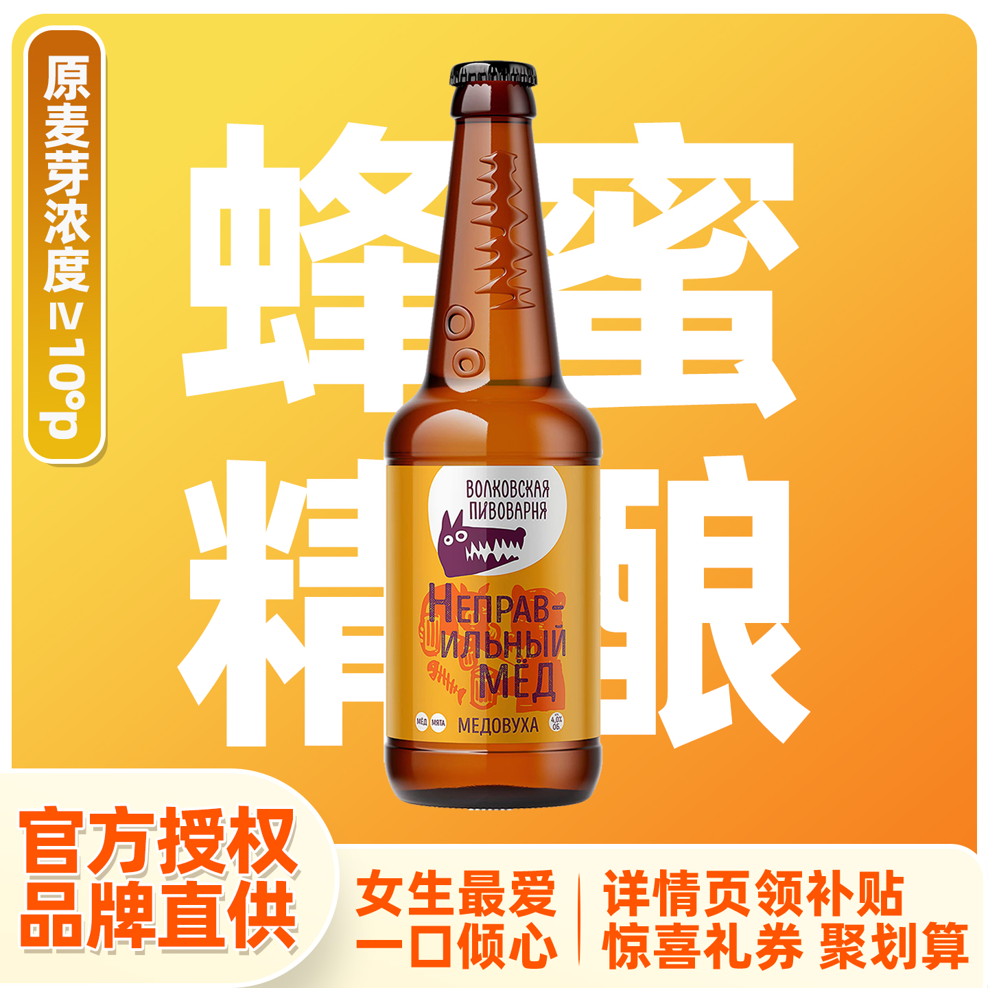 蜂蜜啤酒马赫斯基狼头女甜味啤酒俄罗斯原装进口啤酒酒精度数4°