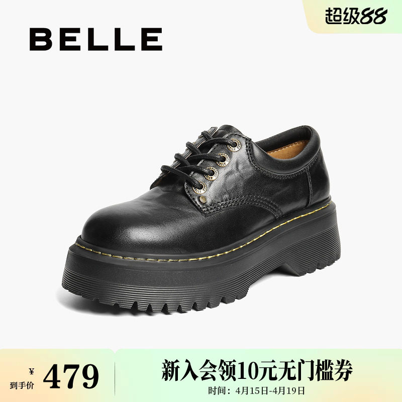 百丽复古厚底系带牛津鞋女新款黑色马丁小皮鞋增高单鞋子B2779