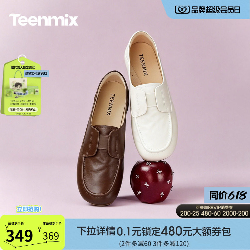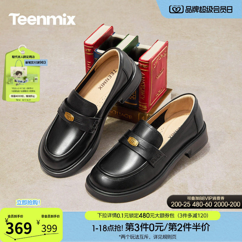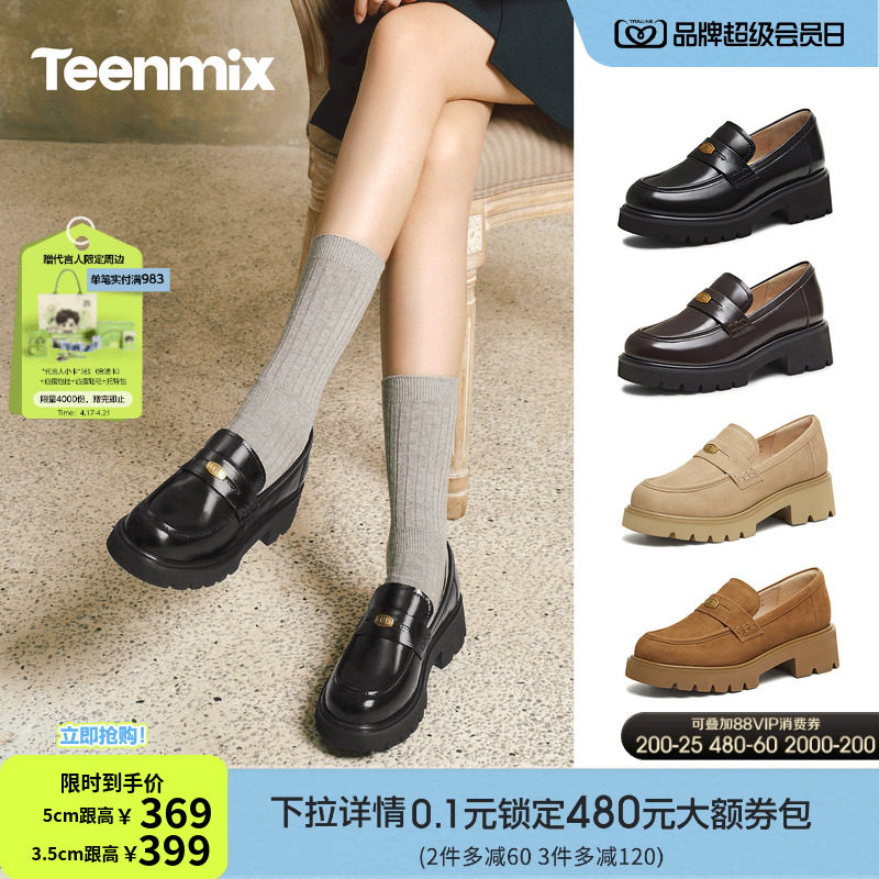 天美意厚底学院英伦乐福鞋复古单鞋女一脚蹬软底小皮鞋2026春新款