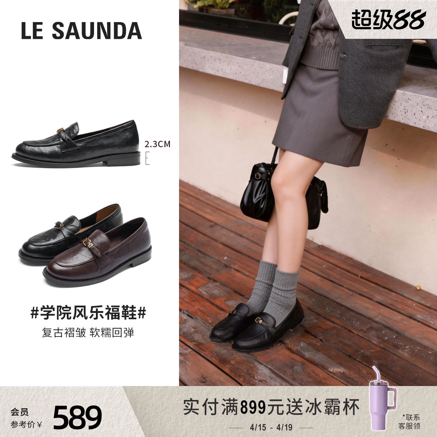 莱尔斯丹2026春季新款真皮复古黑色百搭通勤乐福小皮鞋女21103